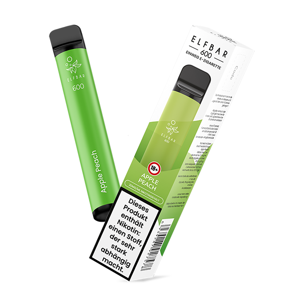 Elfbar 600 Apple Peach bietet einen angenehm milden und ausgewogenen Geschmack von süßen Apfel mit einem Hauch von Frische.